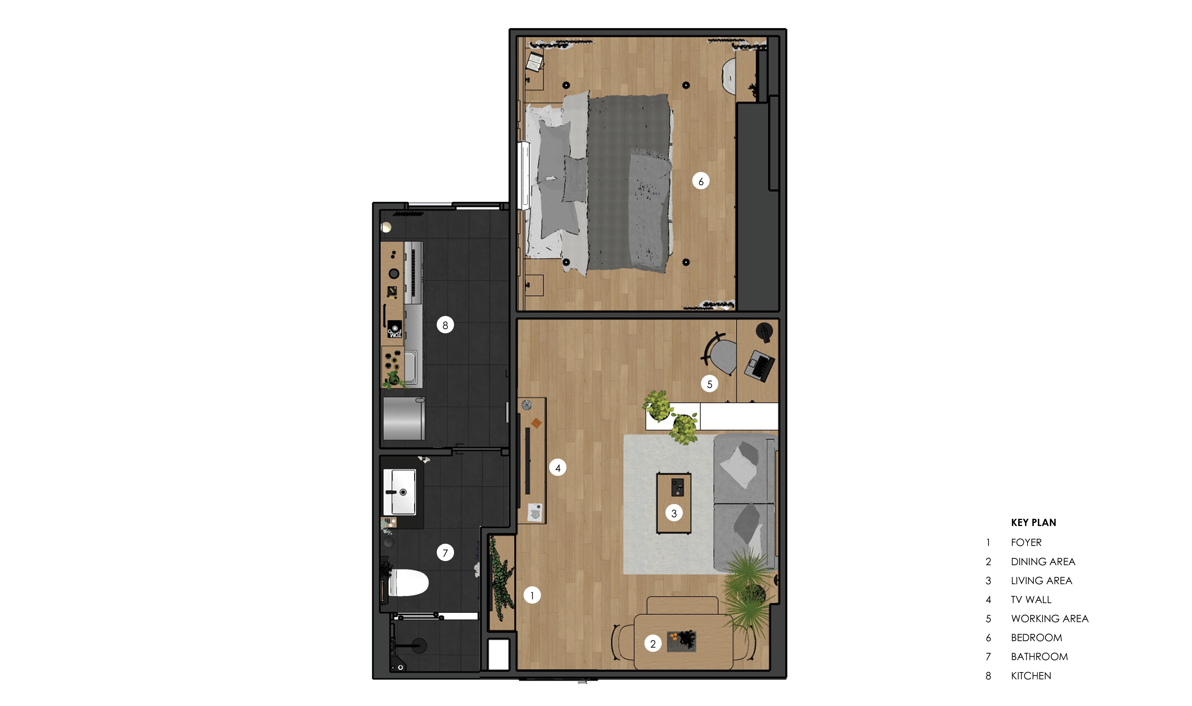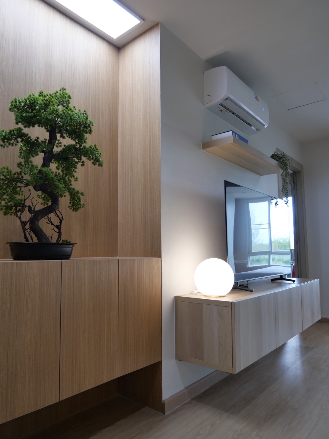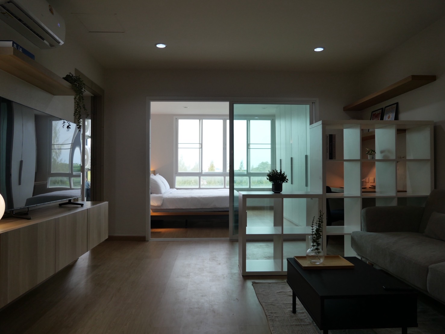 เราออกแบบด้วยแนวคิด Nature in the Space ให้คนอยู่ได้ใกล้ชิดธรรมชาติในทุกมุมของห้อง เพื่อให้แสง ลม และพื้นที่สีเขียว กลายเป็นส่วนหนึ่งของชีวิตทุกวัน อยู่แล้วสบายตา ผ่อนคลาย และมีชีวิตชีวาทุกวัน